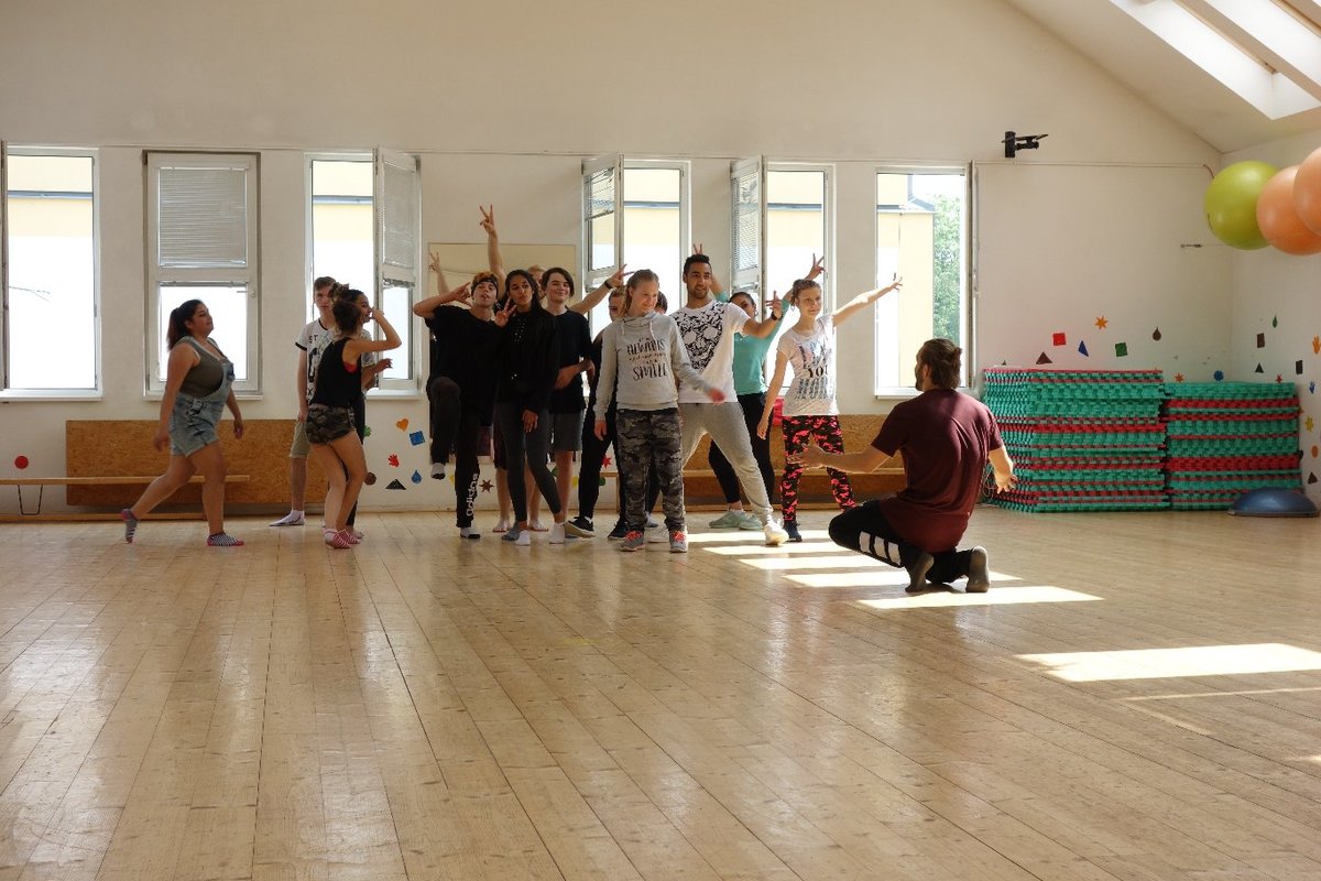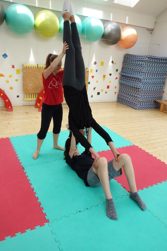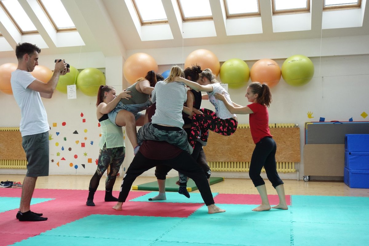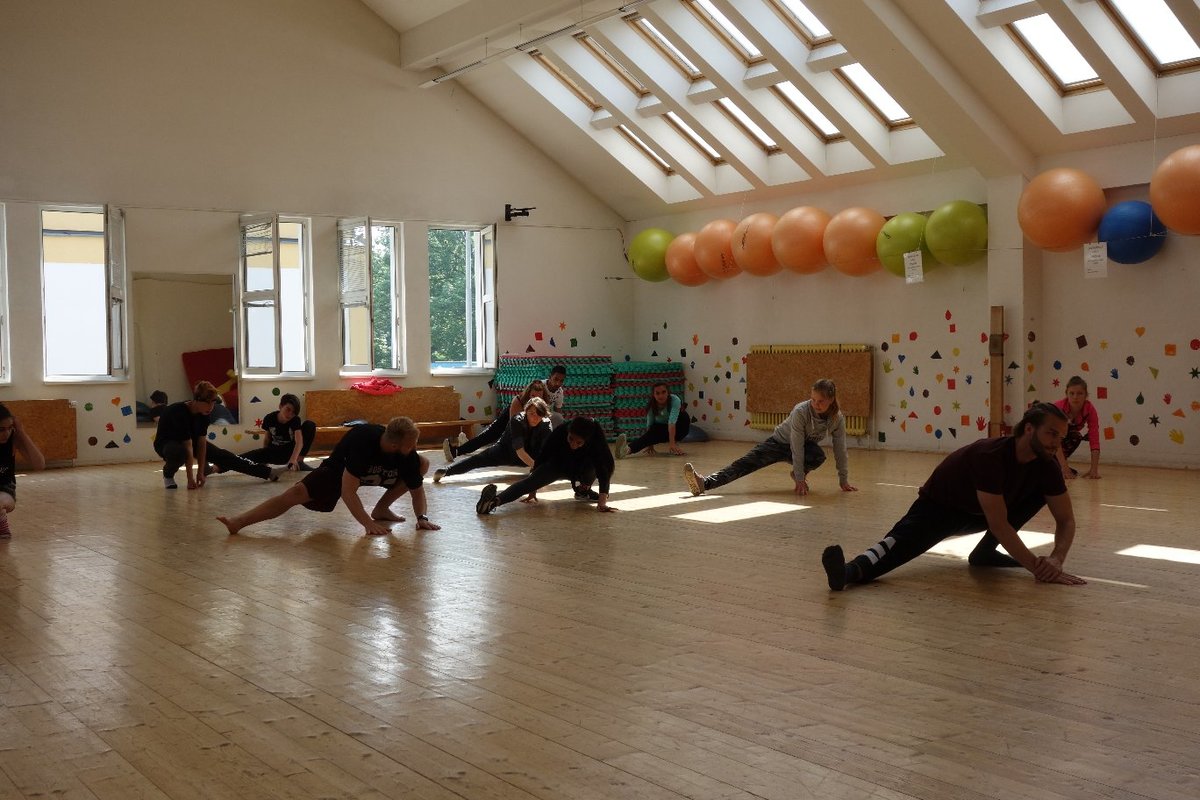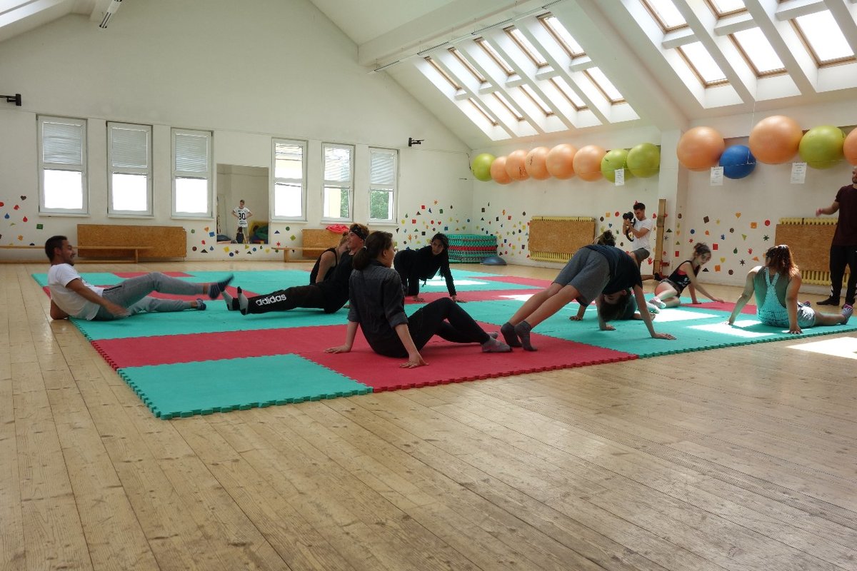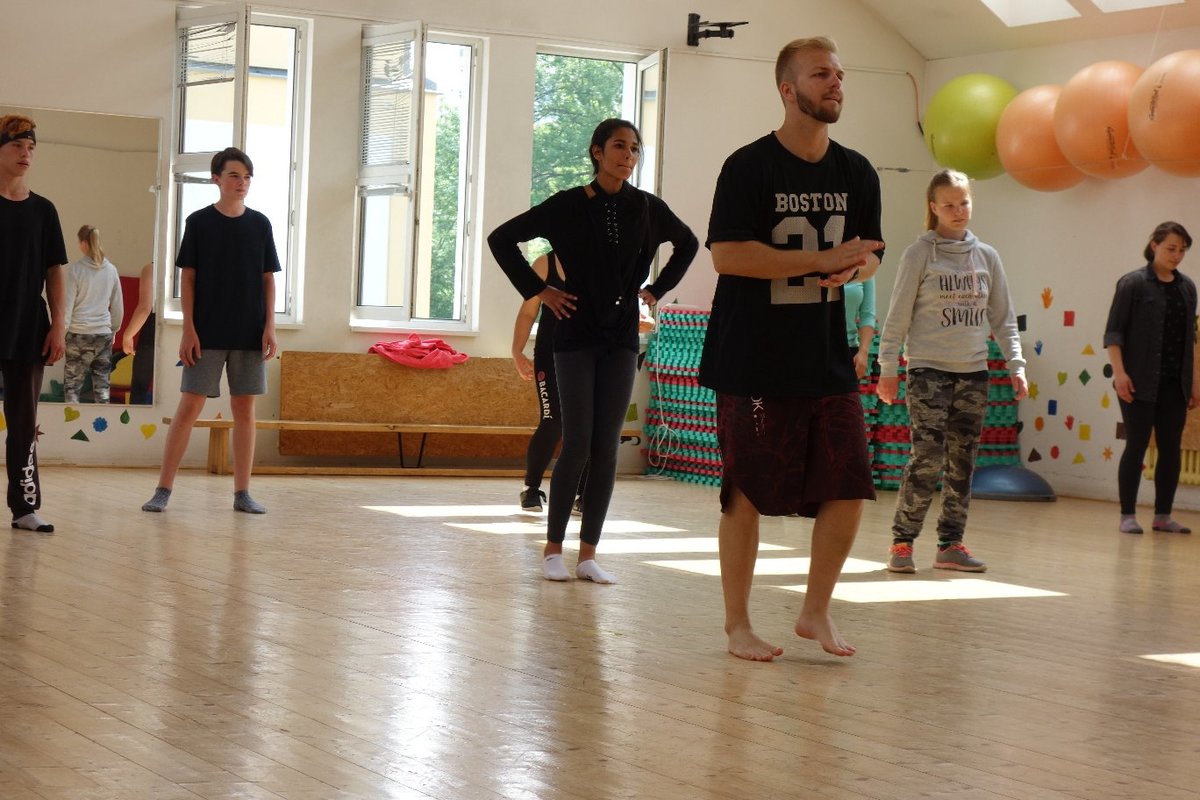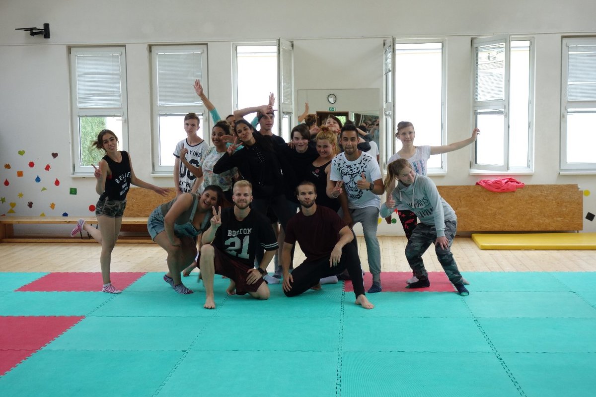 Očekávaný den D nadešel, účastníci z řad dětských domovů zdárně dorazili do Prahy a nadšeně se vrhli na své, nyní již známé, trenéry. Po bouřlivém přivítání následovalo krátké protažení a poté se již děti ponořily do víru tance, po kterém následovala akrobatická část. Ta se občas neobešla bez výkřiků některých děvčat a nutno dodat, že se ne vždy jednalo o výkřiky čisté radosti – občas v nich byla znát lehká obava a adrenalin, ale šikovní a trpěliví trenéři si poradili v každé situaci 🙂