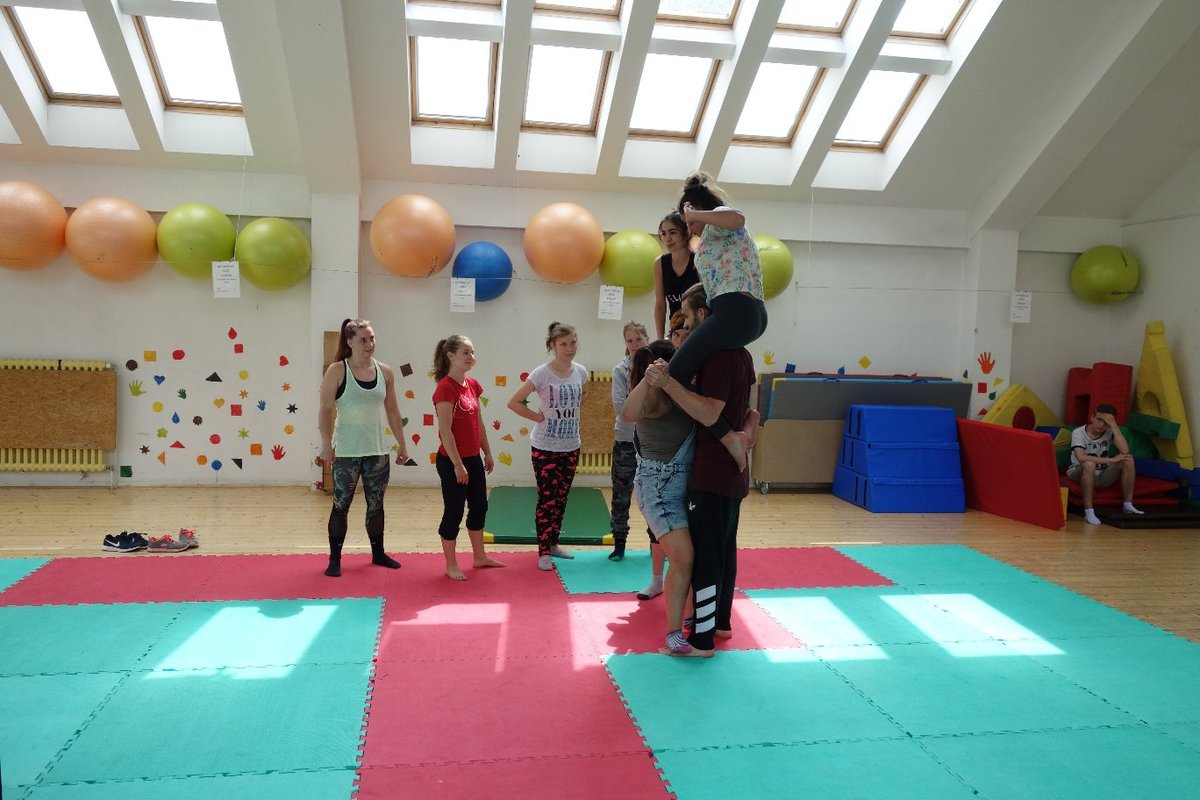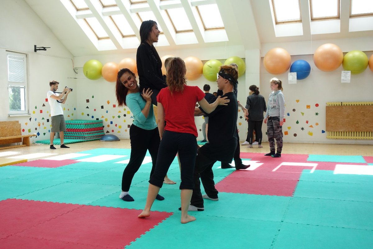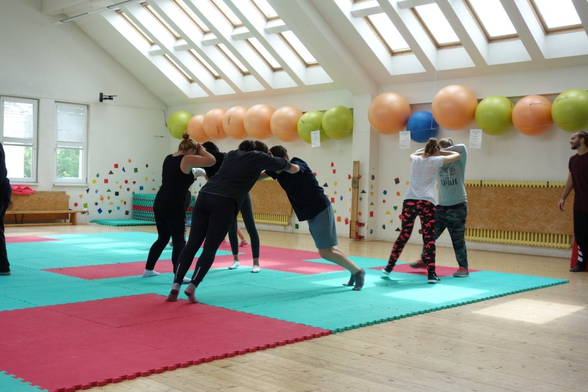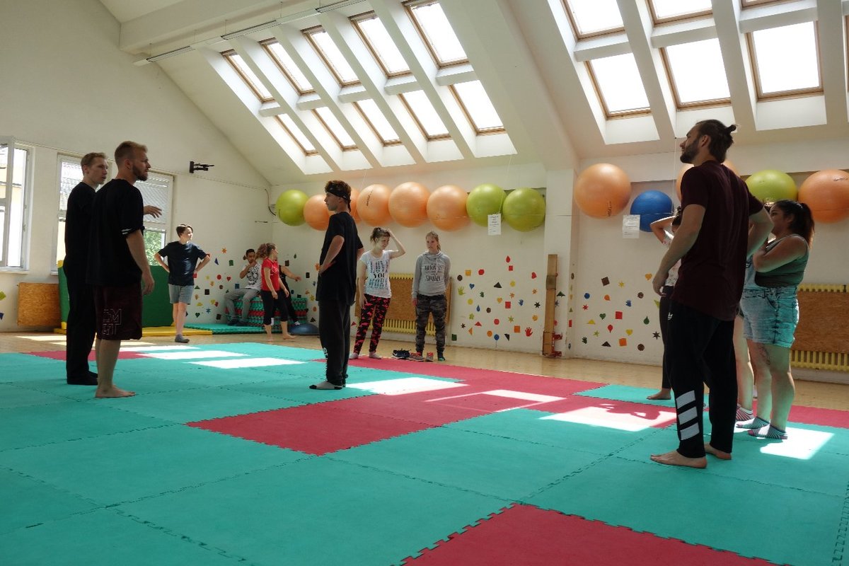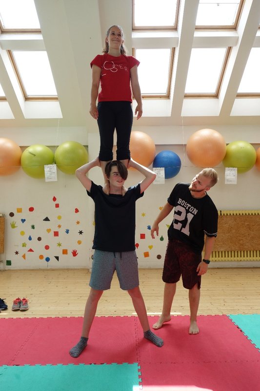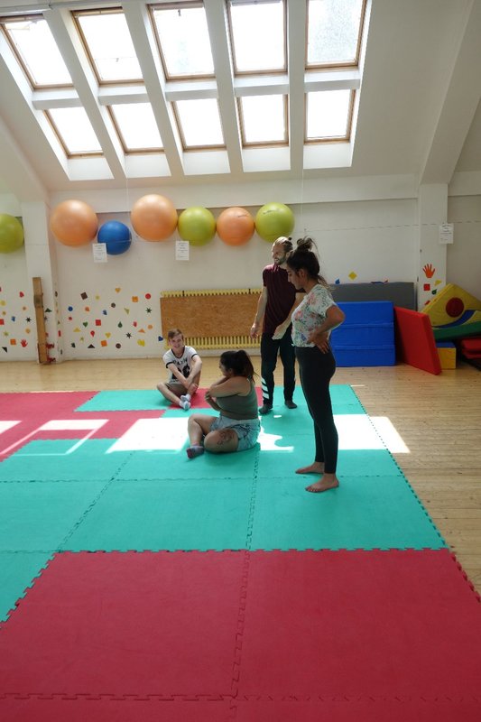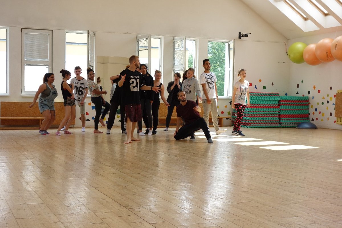 Očekávaný den D nadešel, účastníci z řad dětských domovů zdárně dorazili do Prahy a nadšeně se vrhli na své, nyní již známé, trenéry. Po bouřlivém přivítání následovalo krátké protažení a poté se již děti ponořily do víru tance, po kterém následovala akrobatická část. Ta se občas neobešla bez výkřiků některých děvčat a nutno dodat, že se ne vždy jednalo o výkřiky čisté radosti – občas v nich byla znát lehká obava a adrenalin, ale šikovní a trpěliví trenéři si poradili v každé situaci 🙂