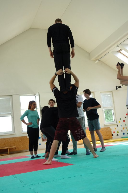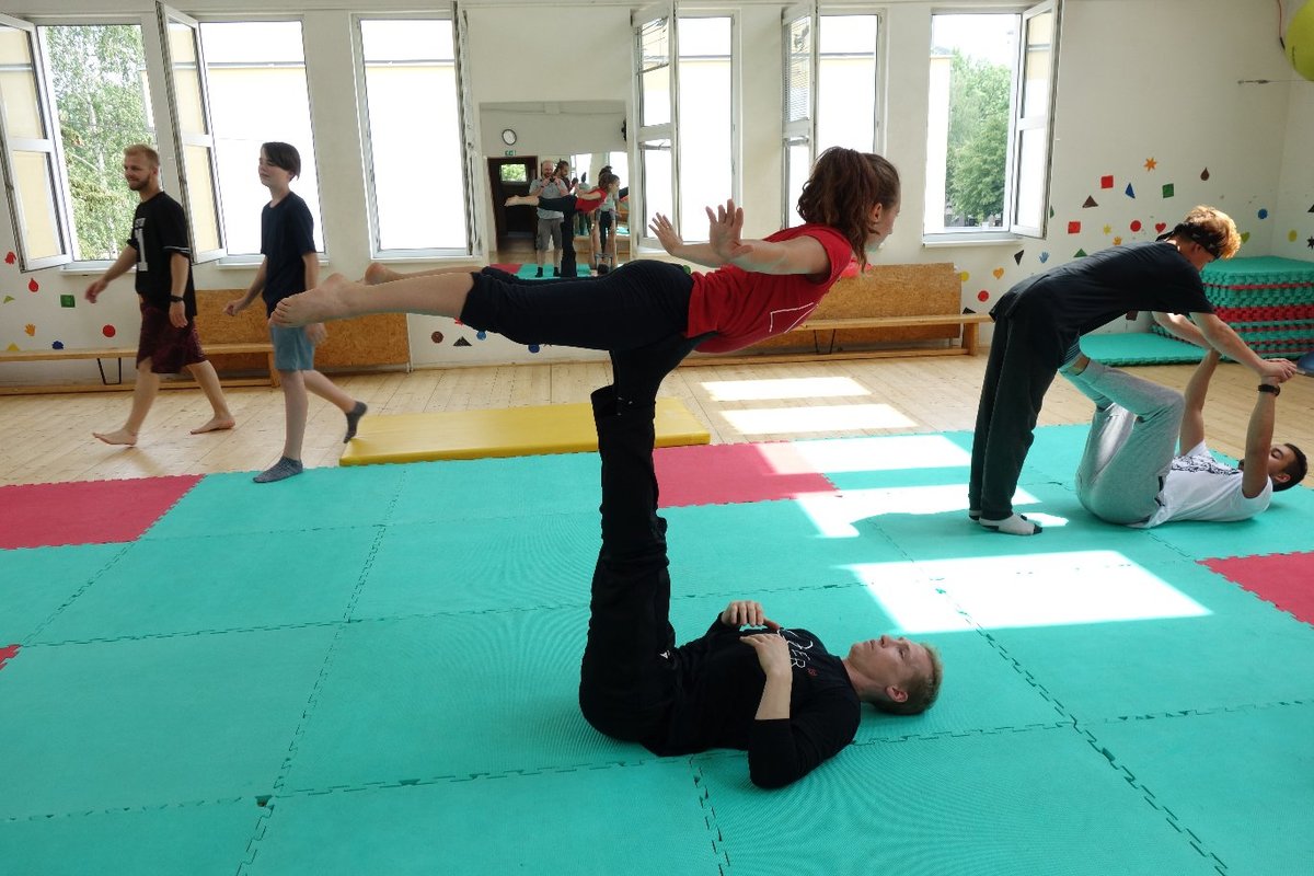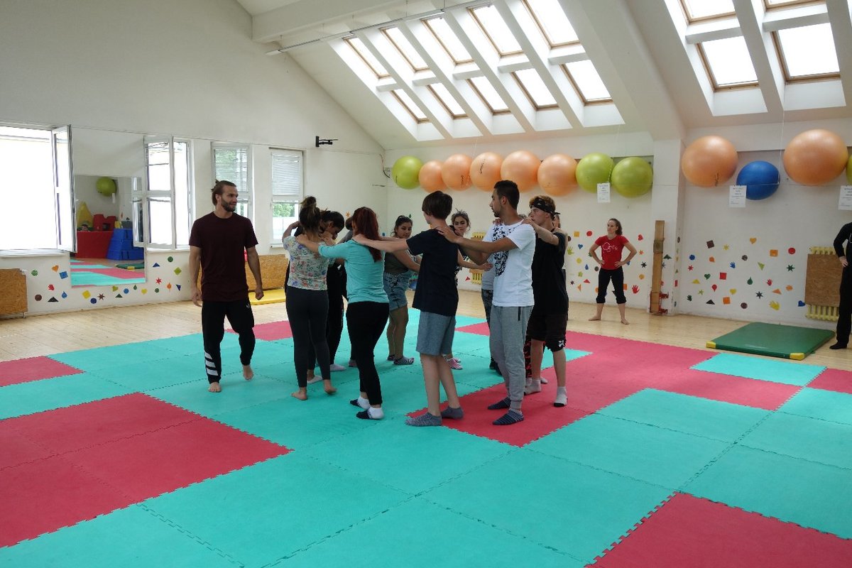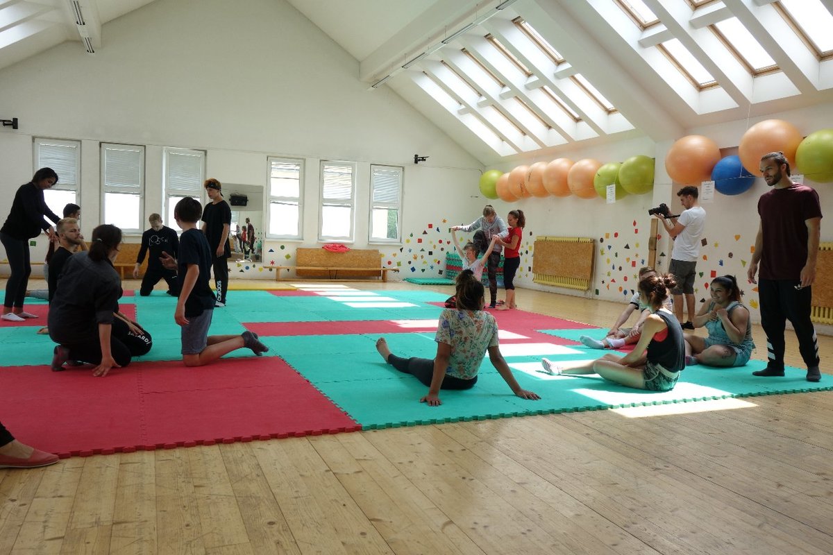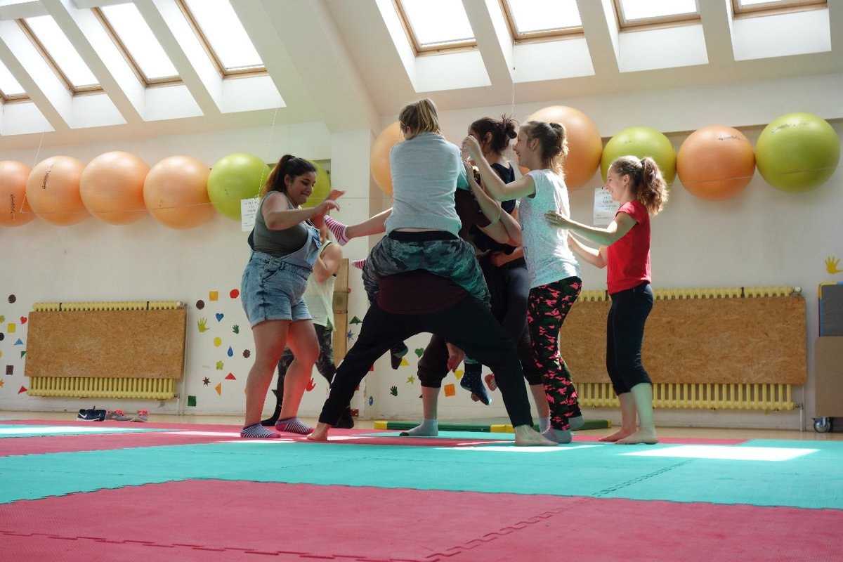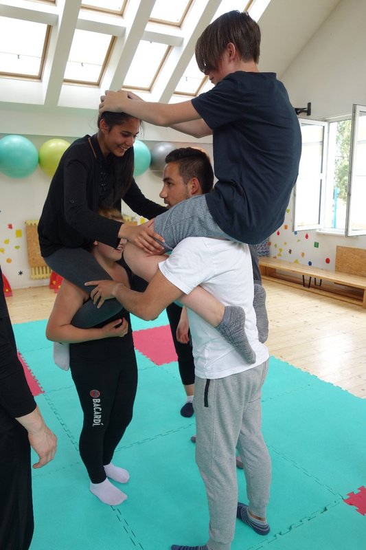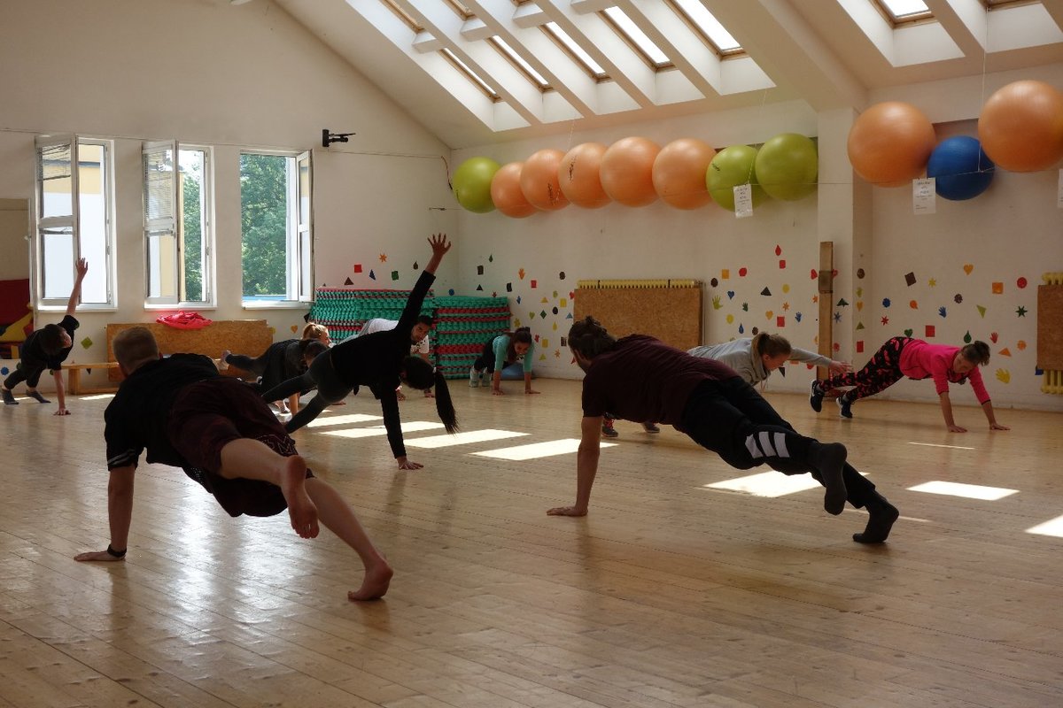 Očekávaný den D nadešel, účastníci z řad dětských domovů zdárně dorazili do Prahy a nadšeně se vrhli na své, nyní již známé, trenéry. Po bouřlivém přivítání následovalo krátké protažení a poté se již děti ponořily do víru tance, po kterém následovala akrobatická část. Ta se občas neobešla bez výkřiků některých děvčat a nutno dodat, že se ne vždy jednalo o výkřiky čisté radosti – občas v nich byla znát lehká obava a adrenalin, ale šikovní a trpěliví trenéři si poradili v každé situaci 🙂