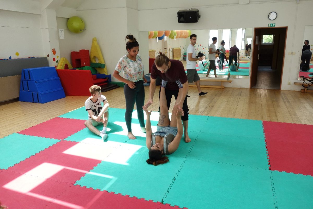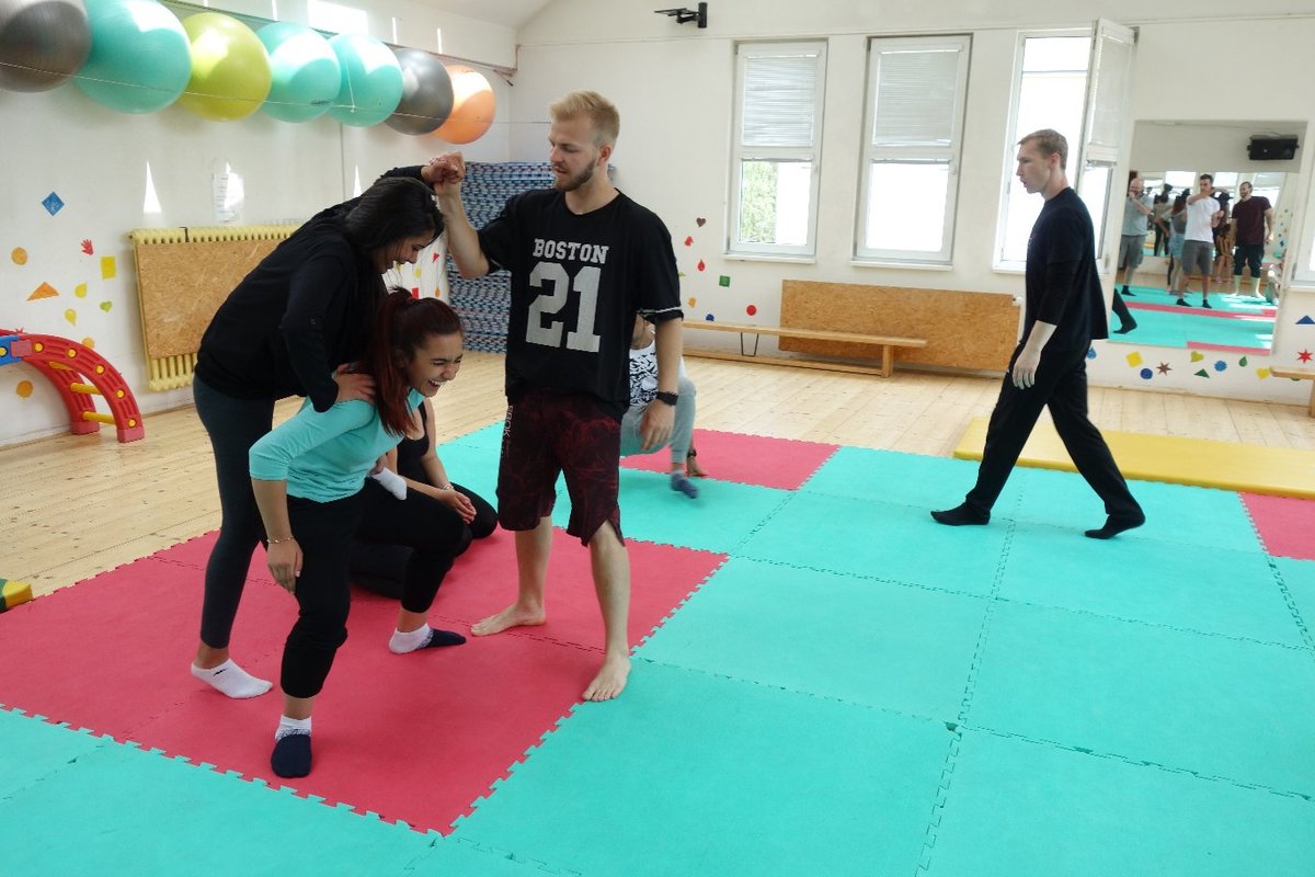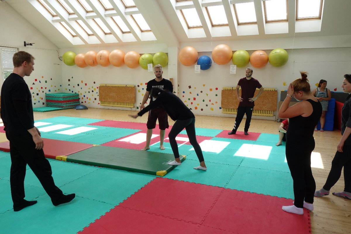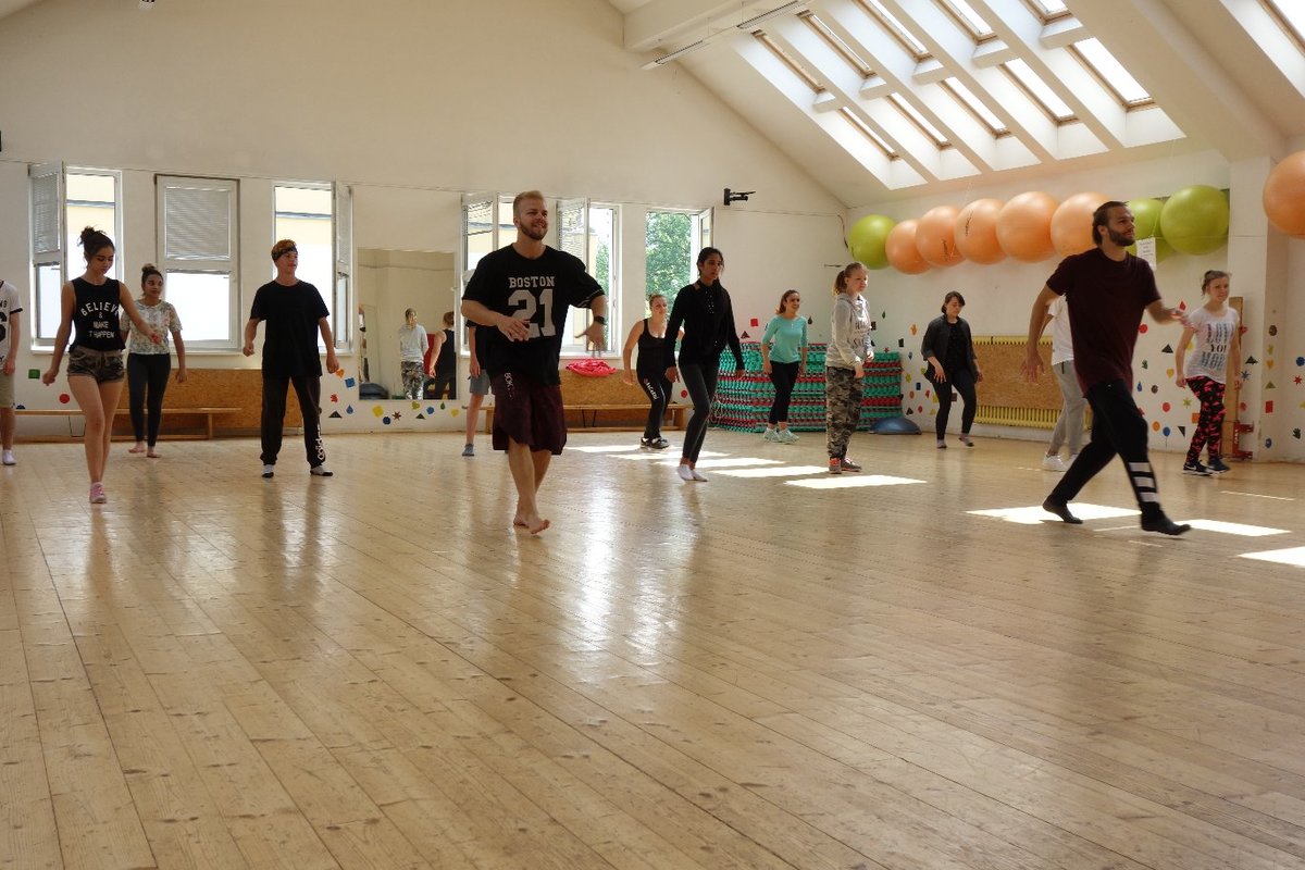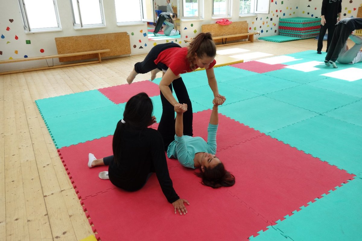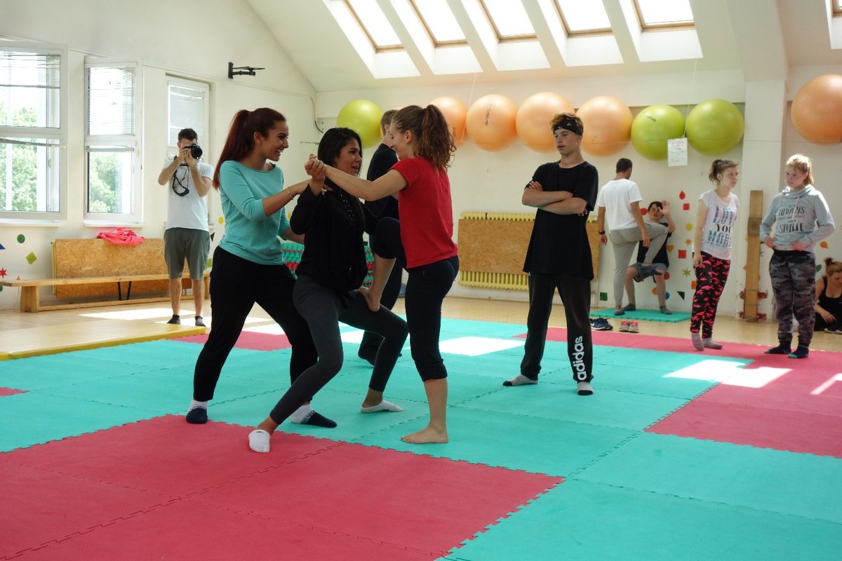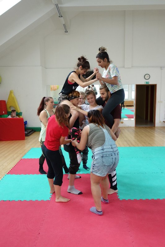 Očekávaný den D nadešel, účastníci z řad dětských domovů zdárně dorazili do Prahy a nadšeně se vrhli na své, nyní již známé, trenéry. Po bouřlivém přivítání následovalo krátké protažení a poté se již děti ponořily do víru tance, po kterém následovala akrobatická část. Ta se občas neobešla bez výkřiků některých děvčat a nutno dodat, že se ne vždy jednalo o výkřiky čisté radosti – občas v nich byla znát lehká obava a adrenalin, ale šikovní a trpěliví trenéři si poradili v každé situaci 🙂