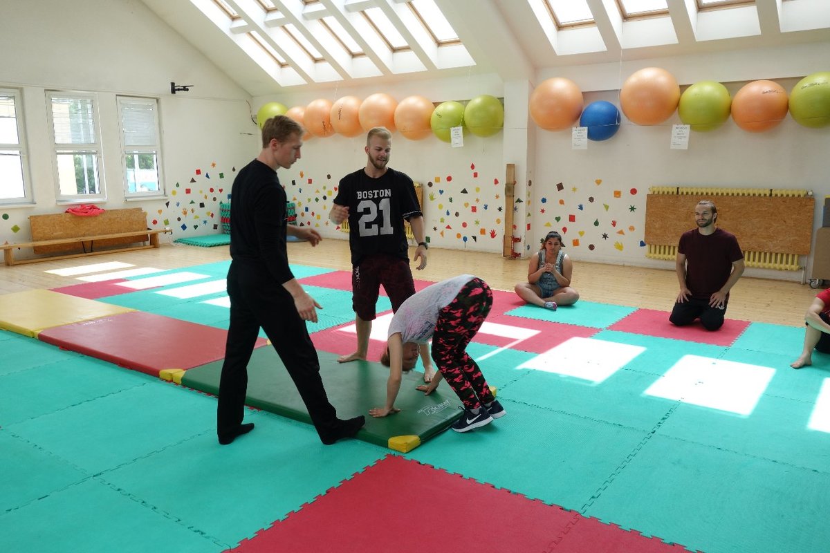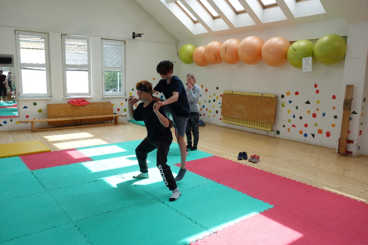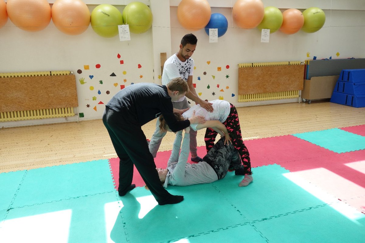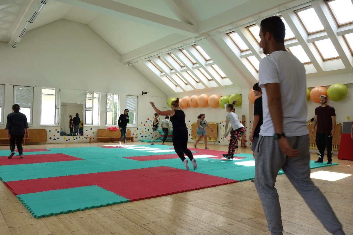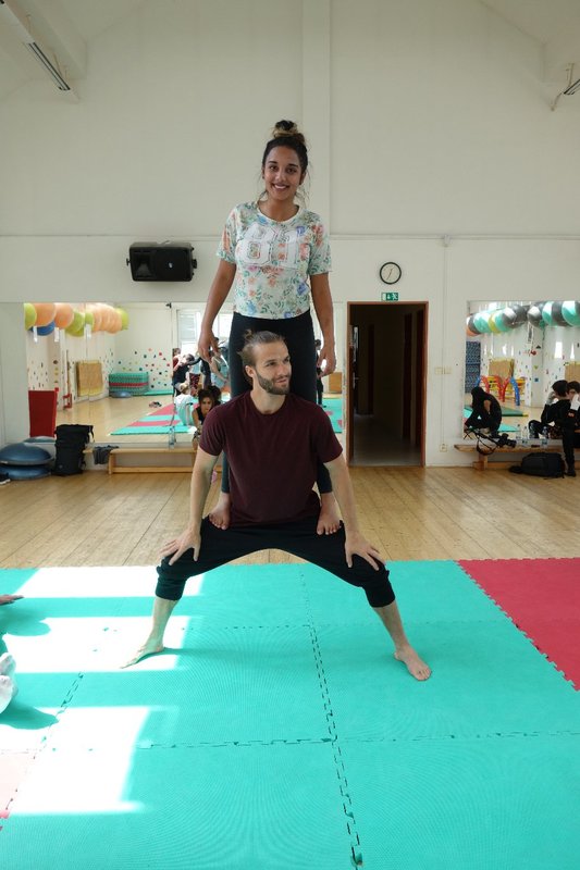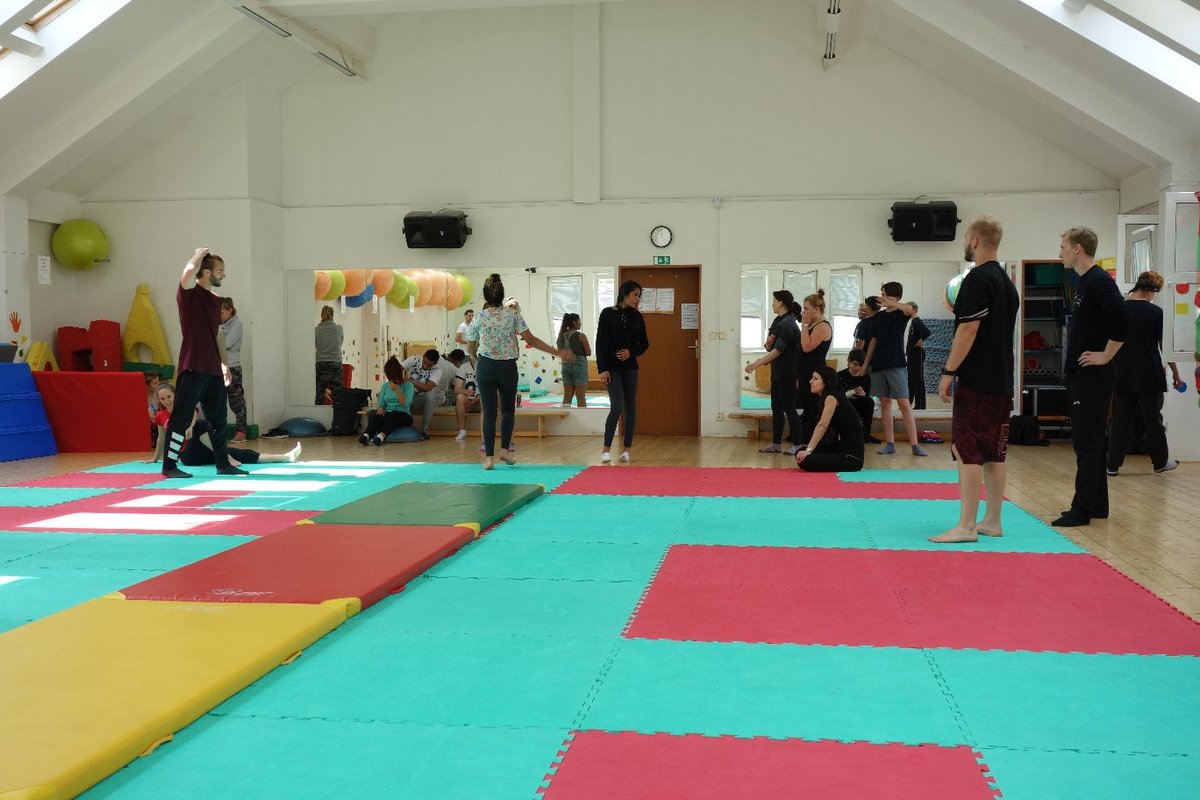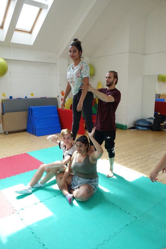 Očekávaný den D nadešel, účastníci z řad dětských domovů zdárně dorazili do Prahy a nadšeně se vrhli na své, nyní již známé, trenéry. Po bouřlivém přivítání následovalo krátké protažení a poté se již děti ponořily do víru tance, po kterém následovala akrobatická část. Ta se občas neobešla bez výkřiků některých děvčat a nutno dodat, že se ne vždy jednalo o výkřiky čisté radosti – občas v nich byla znát lehká obava a adrenalin, ale šikovní a trpěliví trenéři si poradili v každé situaci 🙂