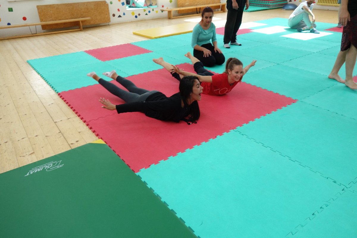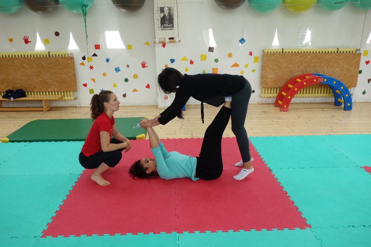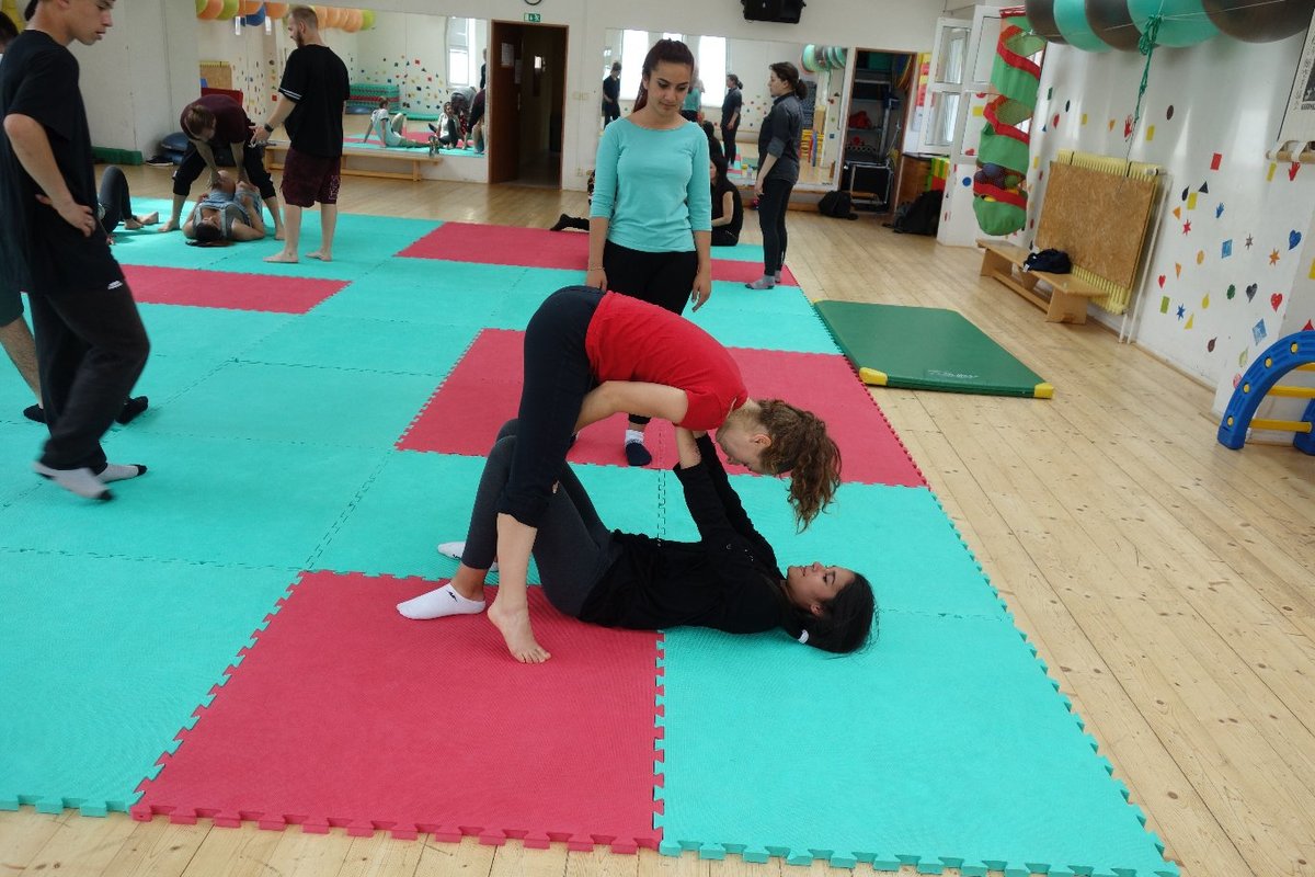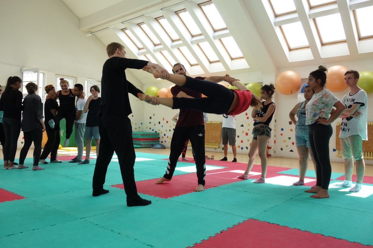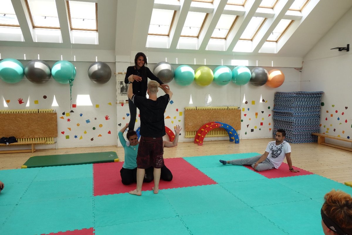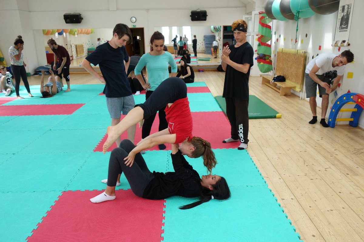 Očekávaný den D nadešel, účastníci z řad dětských domovů zdárně dorazili do Prahy a nadšeně se vrhli na své, nyní již známé, trenéry. Po bouřlivém přivítání následovalo krátké protažení a poté se již děti ponořily do víru tance, po kterém následovala akrobatická část. Ta se občas neobešla bez výkřiků některých děvčat a nutno dodat, že se ne vždy jednalo o výkřiky čisté radosti – občas v nich byla znát lehká obava a adrenalin, ale šikovní a trpěliví trenéři si poradili v každé situaci 🙂