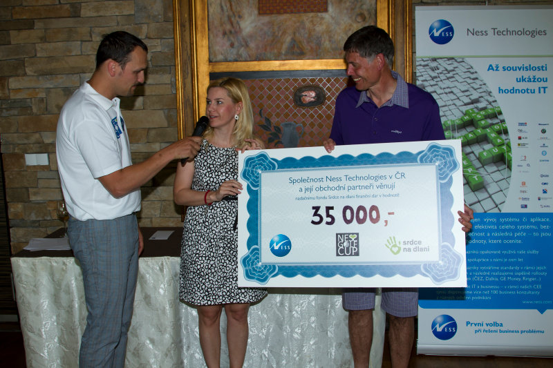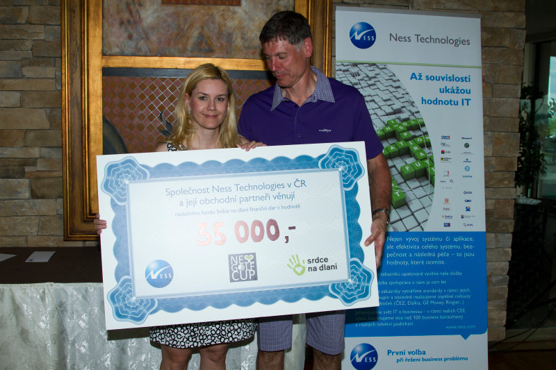 26.5.2011 pořádala společnost Ness ve Vysokém Újezdě dobročinný golfový turnaj ve prospěch Nadačního fondu Srdce na dlani. V resortu Albatross se ho zúčastnili zástupci společnosti Ness i její obchodní partneři. Počasí turnaji přálo, věříme, že si ho všichni golfisté užili. Na závěr proběhly soutěže pro zpestření (např. prostřelování golfového vozíku).V rámci turnaje proběhla též tichá aukce výrobků dětí z dětských domovů Černá Voda, Krásná Lípa, Litoměřice a Tisá. Prodaly se všechny výrobky: krásné vázy, obrázky, golfové míčky z perníku nebo drobnosti z keramiky. Výherci turnaje převzali krásné ceny z keramiky (ozdobné kachle s golfovou tematikou), které vytvořily děti z DD Tisá.Golfového turnaje se v roli hostesek zúčastnily děti z DD Černá Voda – za Ness děkujeme Lukášovi, Danovi, Báře a Radce za jejich pomoc. Odpoledne si děti zpestřily hraním golfu – odpalováním a patováním.Dohromady jsme na turnaji vybrali ve prospěch Nadačního fondu Srdce na dlani 35 000 Kč na podporu projektů nadačního fondu a partnerských dětských domovů.