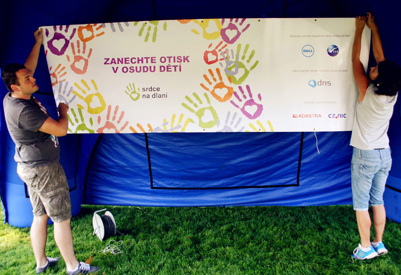 V sobotu 6. září jsme postavili stan (za laskavé zapůjčení děkujeme spol. DELL) v rámci „workshop zone“ na Ladronkafestu (festivalu volnočasových aktivit). Návštěvníkům festivalu jsme prezentovali výrobky z dětských domovů, s dětmi z dětských domovů bylo možné zažít pletení košíků i velmi populární malování na obličej! Na hlavním pódiu vystoupila také Jitka Kocurová, patronka Srdce na dlani, kde představila činnost nadačního fondu a představila možnost přispět dětem z dětských domovů pomocí DMS.