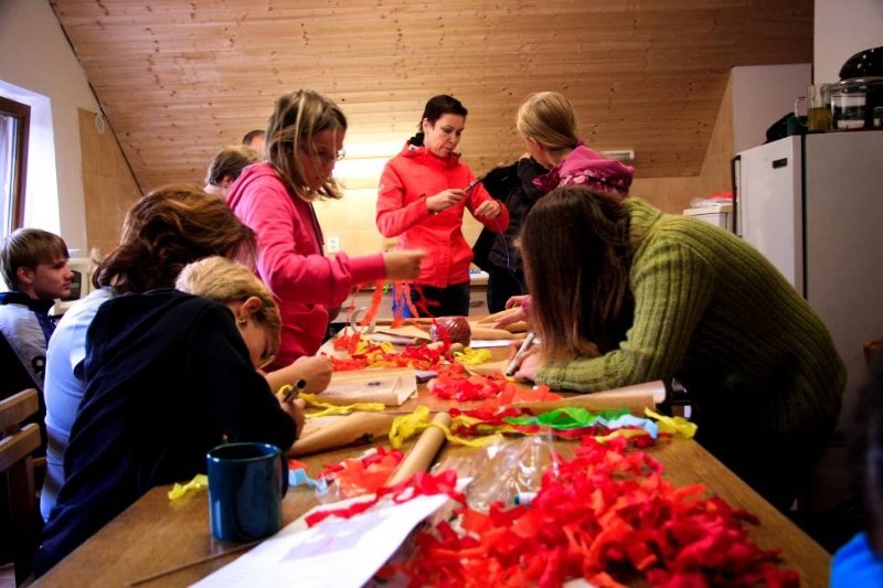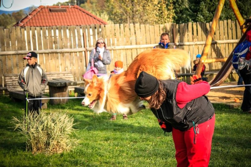 V sobotu jsme se rozdělili do týmů a zahráli si šipkovanou. Po cestě jsme plnili spoustu náročných úkolů, prošli okolí Černé Vody, v rámci trasy jsme vyšplhali na Píšťalu, prošli zříceninu Kaltenštejna, hledali „cashky“, vyrobili si týmového talismana a složili i básničku z předem daných slov. Odpoledne jsme pokračovali hledáním pokladu – byla to taška plná sladkých odměn pro děti. Pak jsme si zajeli na krátký výlet do zooparku v Lipové, kde jsme obdivovali zvířátka a v rámci speciálního programu ke dni zvířat shlédli např. akrobatické vystoupení psů, vyrobili si náramek z korálků, nebo si ti odvážní z nás nechali udělat malované tetování. Večer jsme si zapálili táborák, opekli buřty, a když se setmělo vyrazili jsme s lampióny a baterkami na cestu do domova.