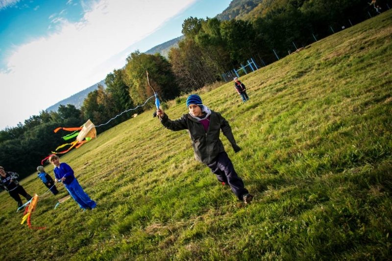 V neděli jsme si společně vyrobili a pomalovali papírové draky, které jsme pak na louce pouštěli. Sice foukalo trošku méně než v sobotu, ale i tak se nám podařilo dostat všechny draky na oblohu 🙂