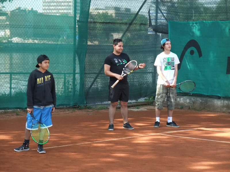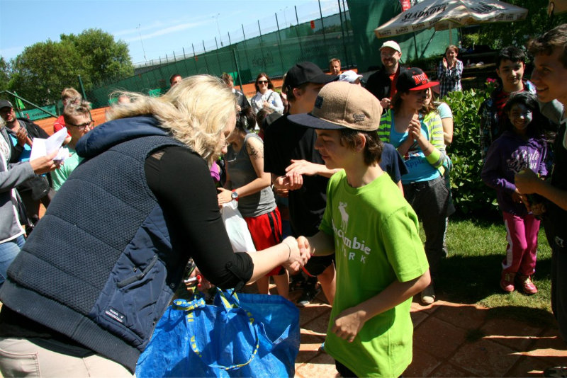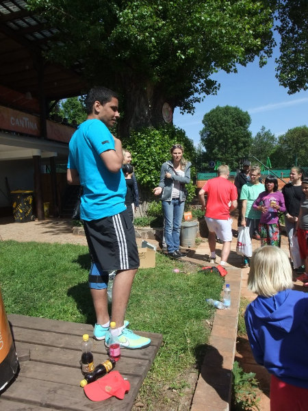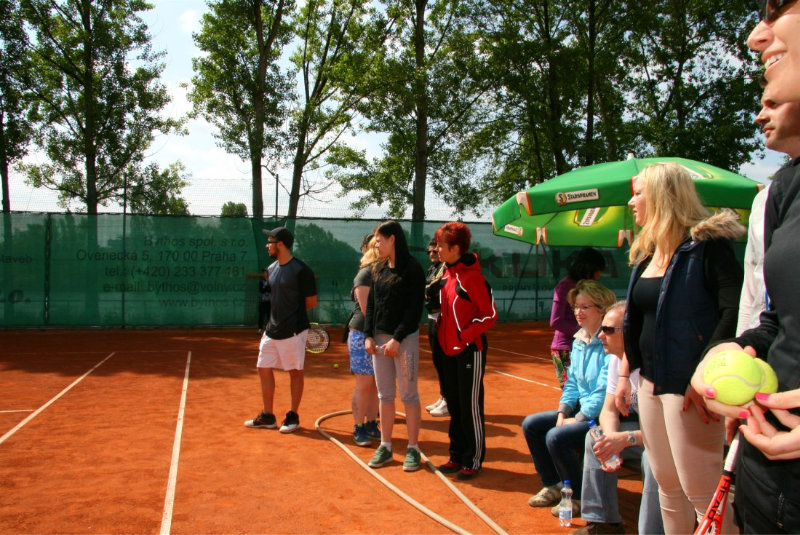 Sobotní dopoledne už na děti čekaly nachystané kurty v TO Baník Praha. Slunečný den patřil pilnému tréninku s trenéry ze společnosti IBM (Martin, Honza, Honza 2 🙂 a s trenéry SND (Michal, Lucie, Vítek, Nikolka). Jako doprovodný program bylo možné zabruslit si na přilehlé stezce podél Vltavy, navštívit ZOO nebo sledovat semifinálový hokejový zápas Kanada – Česko. Zajištěn byl oběd, svačiny a také kompletní a bohatý pitný režim od Pivovaru Lobkowitz. Večer patřil opět bowlingu a kinu.