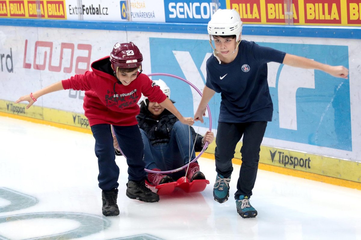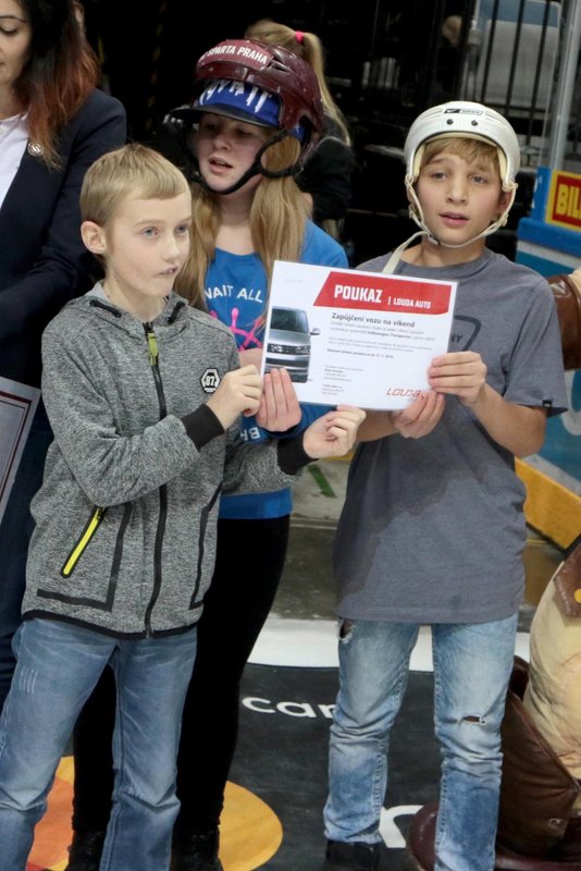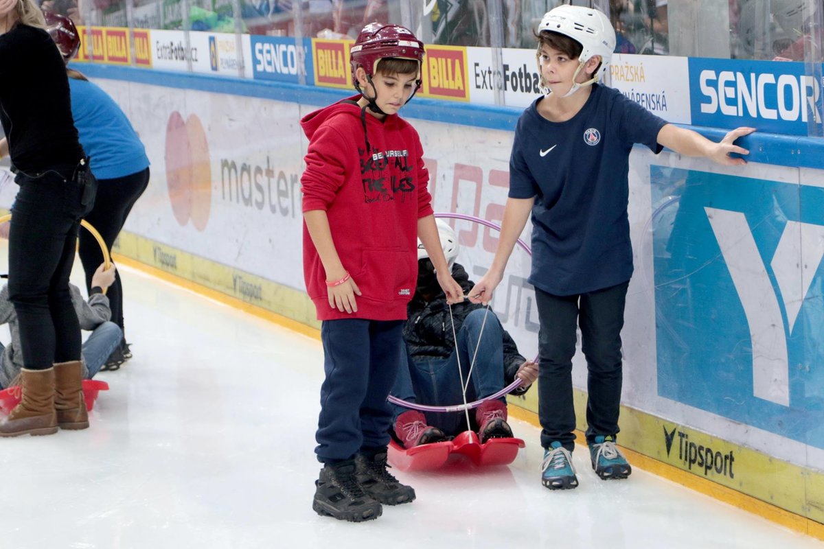 Druhá přestávka patřila soutěži domovů proti sobě – závod v tahání bobů po ledě. Zvítězil tým Zruče a získal tak zapůjčení velké dodávky pro transport osob na celý víkend pro svůj domov! Zástupci HC Sparta Praha také předali nadačnímu fondu Srdce na dlani šek na úžasných 42 185Kč!