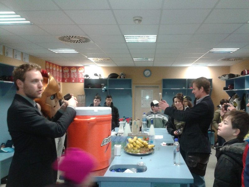 V druhé přestávce utkání byly dětem předány dárky od fanoušku HC Sparta Praha.