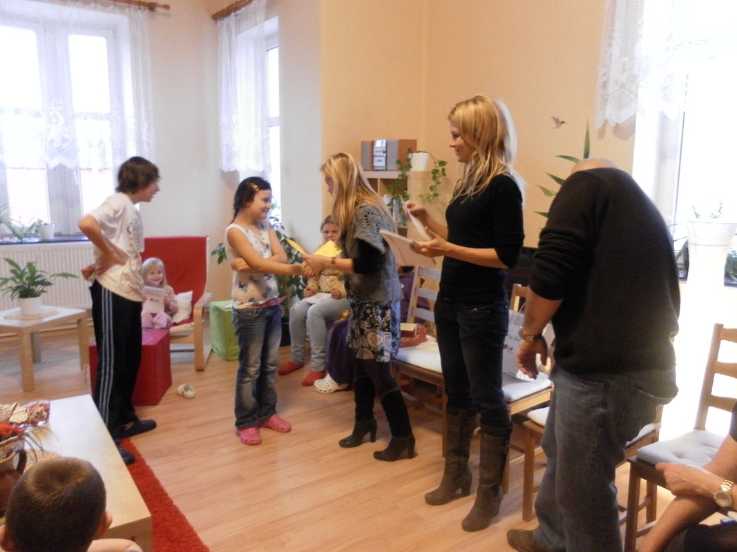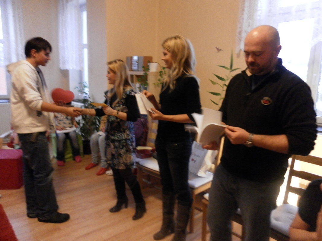 Pokračujeme v předávání cen a dne 15.2. vyjíždíme společně s psychologem Petrem a novou revizorkou NF SND Evou do DD v Krásné Lípě. Dětičky už nás čekaly s velkou netrpělivostí a nachystaly pro nás výborné pohoštění, spousta sladkostí, koláčků, chlebíčků a ještě pro nás upekly srdce z perníku. Tak jako v jiných domovech při vyhlašování jsme také v Krásné Lípě předaly mobilní telefony od společnosti LG a tady to mělo obrovský efekt, protože těm, co se nepodařilo umístit, pečlivě pátraly, jestli tato cena bude na vyhlášení MP na konci školního roku. Slíbili jsme, že určitě bude a těšíme se na výsledky. Celkově se umístilo 14 dětí a náležela jim zasloužená odměna.