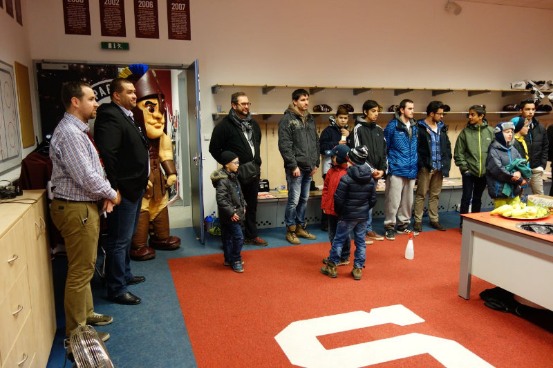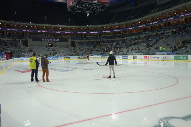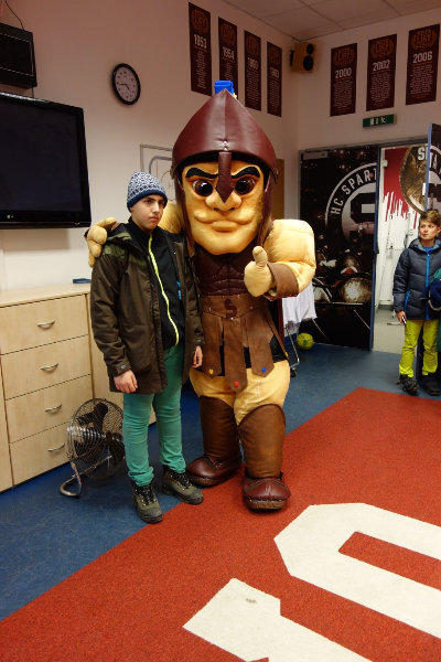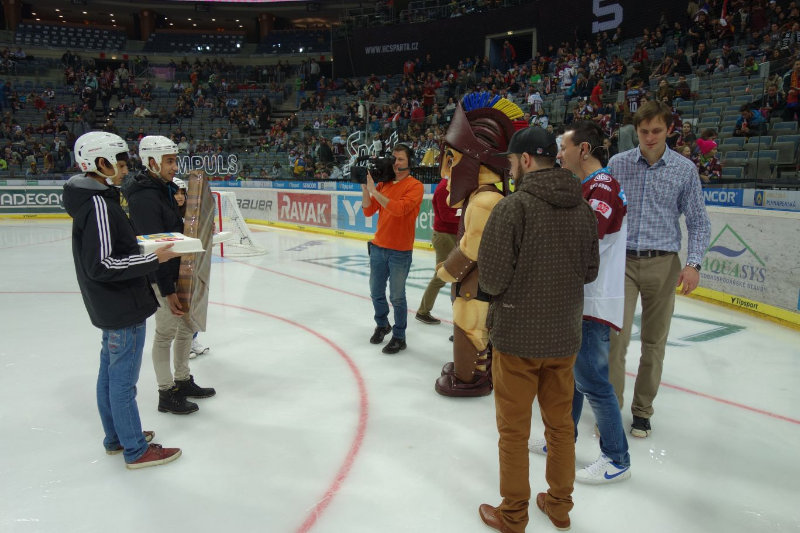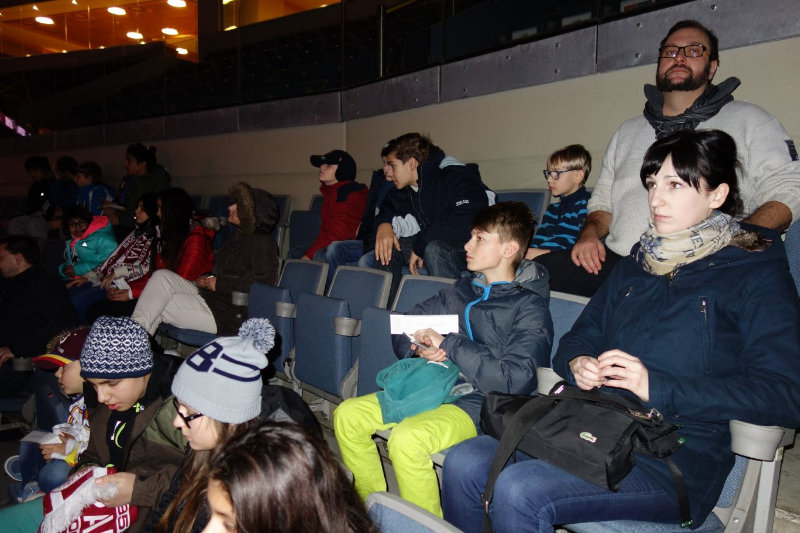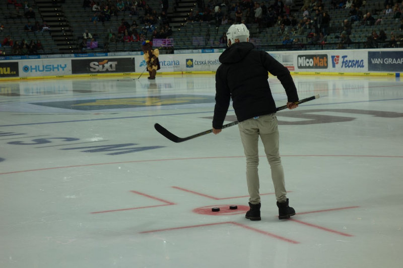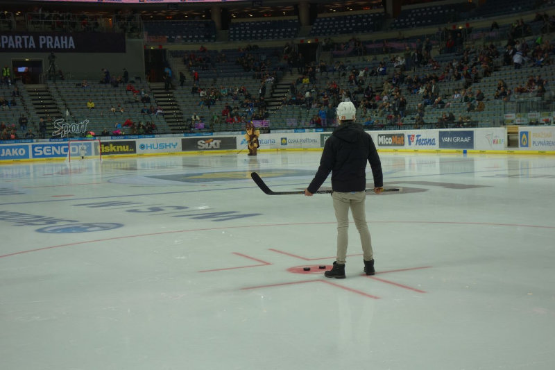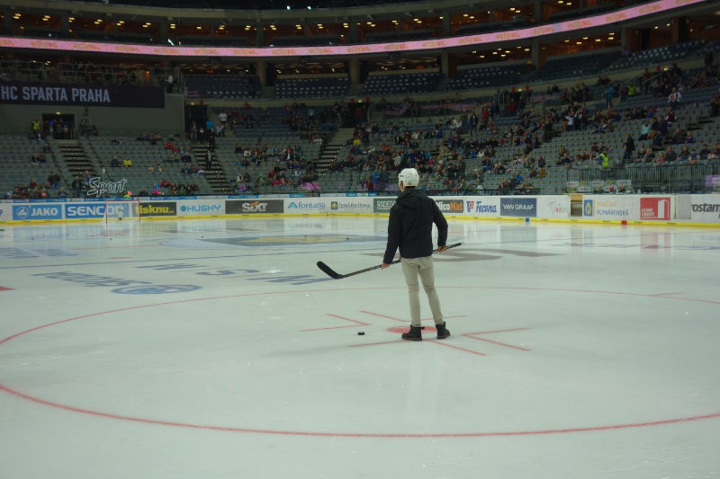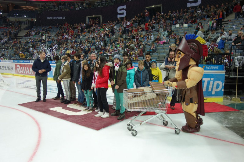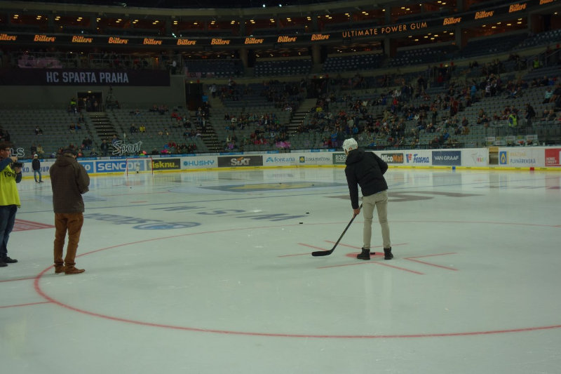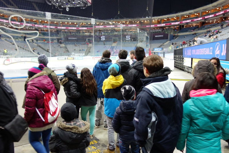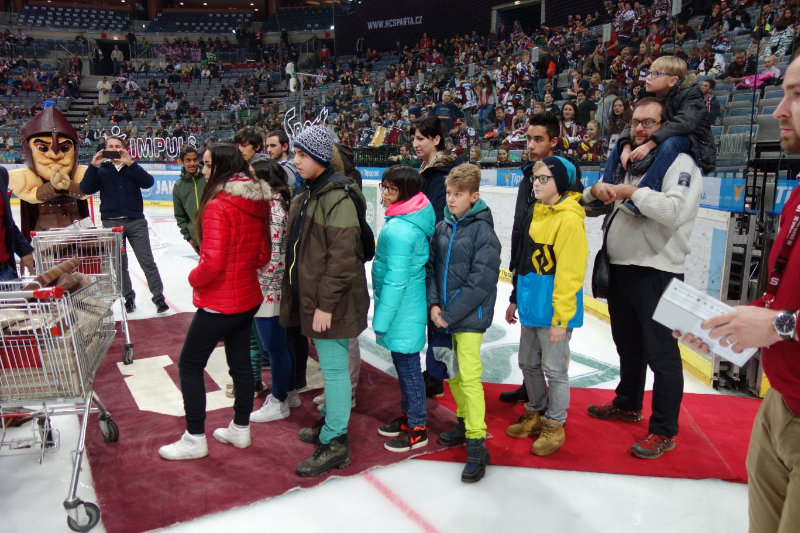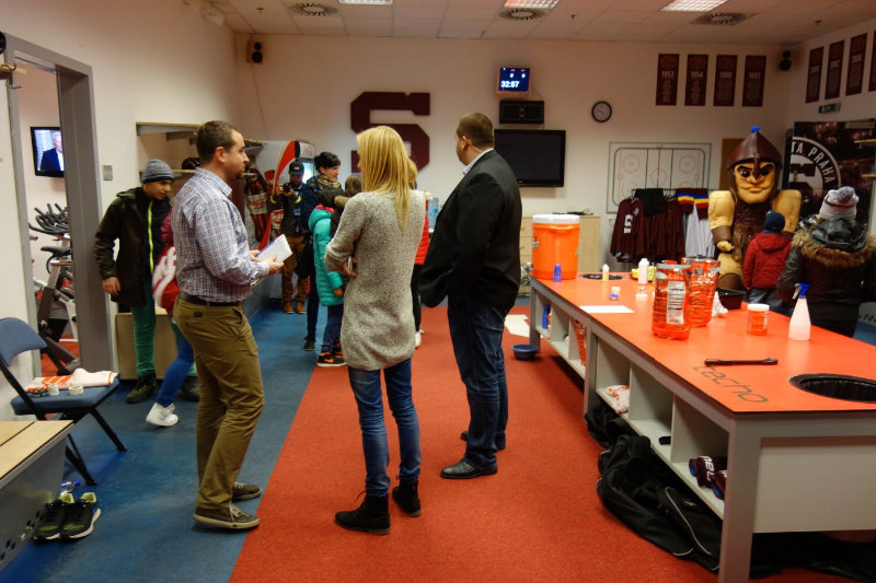 Následoval přesun do O2 Arény, prohlídka zázemí stadionu a šaten hráčů. O přestávkách si tři zástupci DD Litoměřice (Esmeralda), DD Krásní Lípa (Kevin) a DD Tisá (Martin) zasoutěžili na ledě ve střelbě hokejkou – pukem na cíl. Všichni zúčastnění byli oceněni dortem a výherce Kevin získal pro svůj domov stolní hokej!