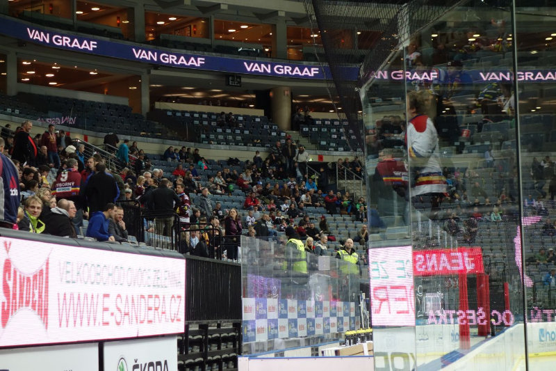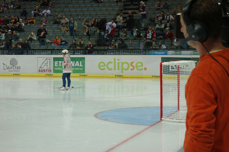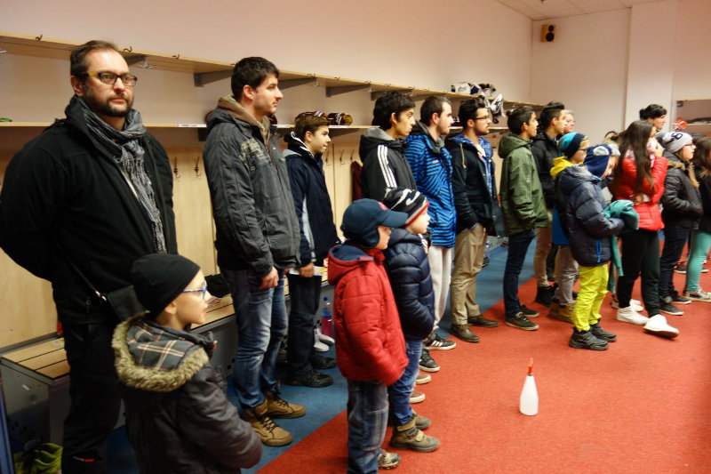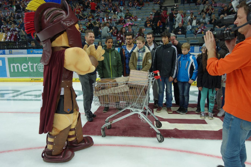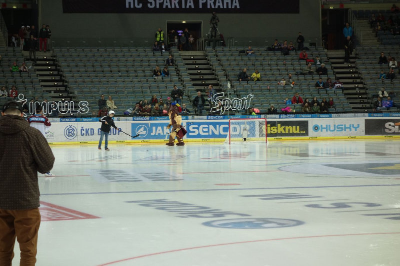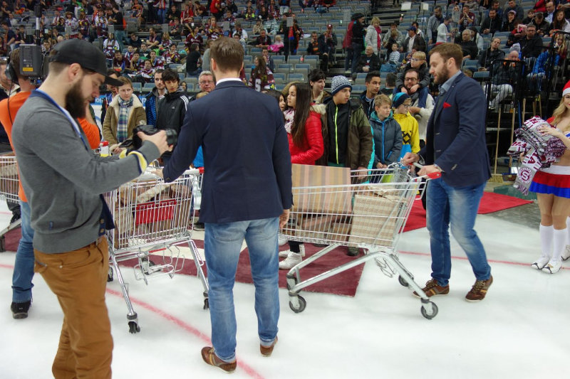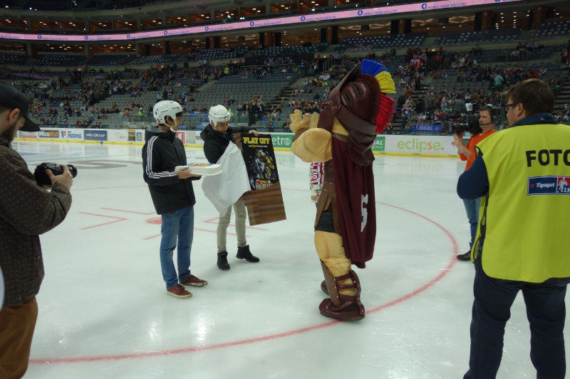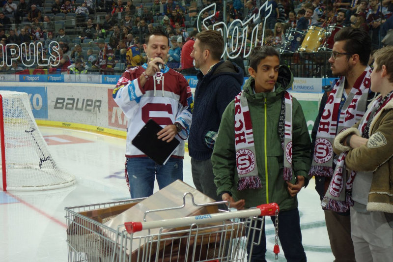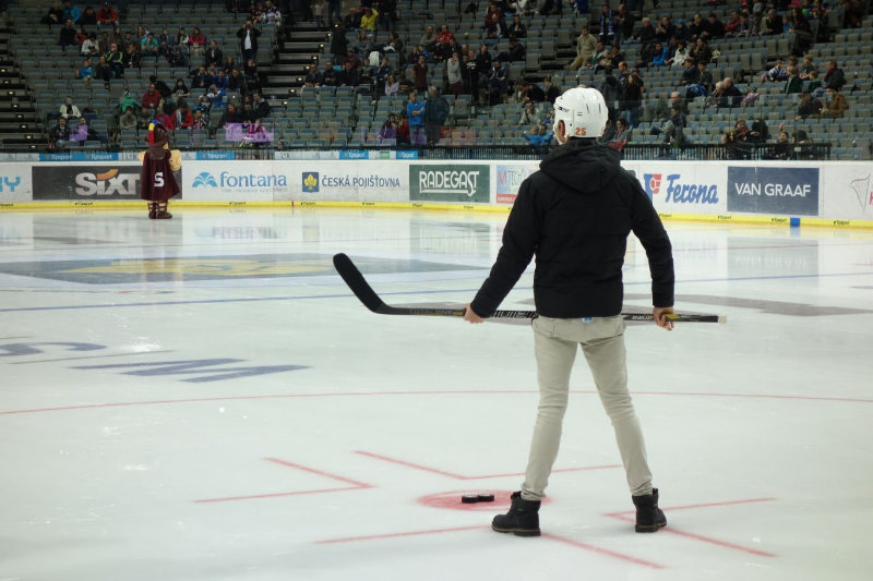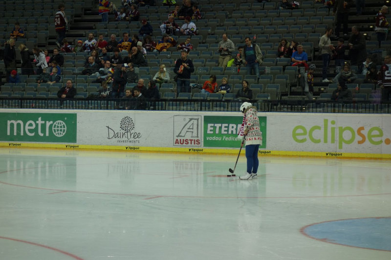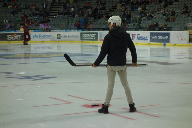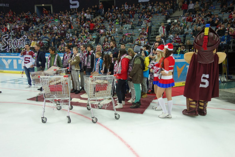 Následoval přesun do O2 Arény, prohlídka zázemí stadionu a šaten hráčů. O přestávkách si tři zástupci DD Litoměřice (Esmeralda), DD Krásní Lípa (Kevin) a DD Tisá (Martin) zasoutěžili na ledě ve střelbě hokejkou – pukem na cíl. Všichni zúčastnění byli oceněni dortem a výherce Kevin získal pro svůj domov stolní hokej!