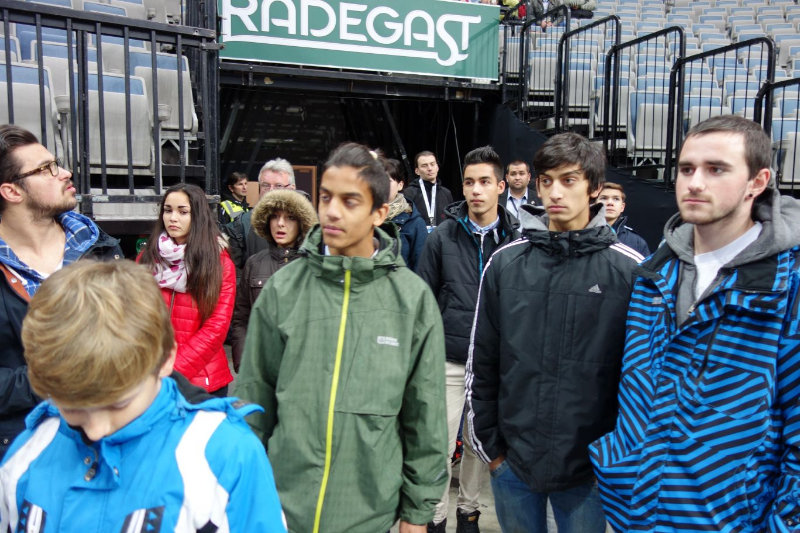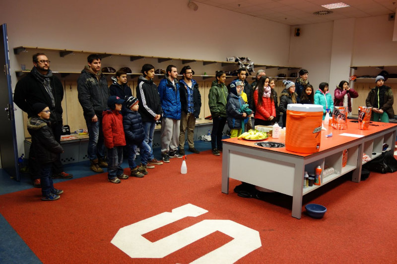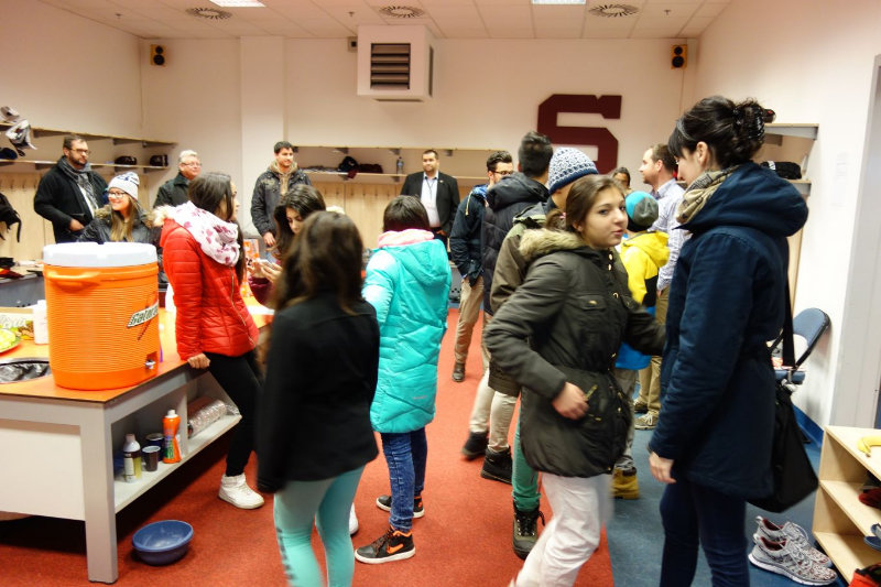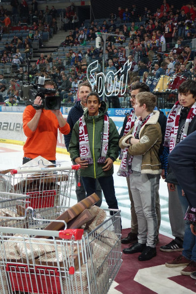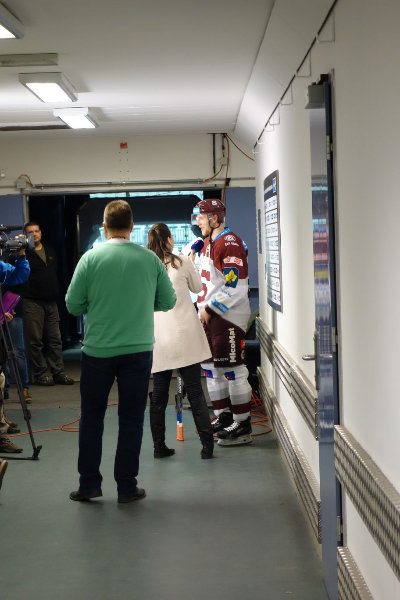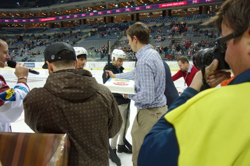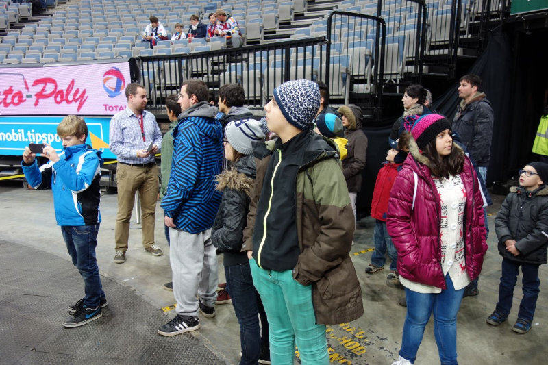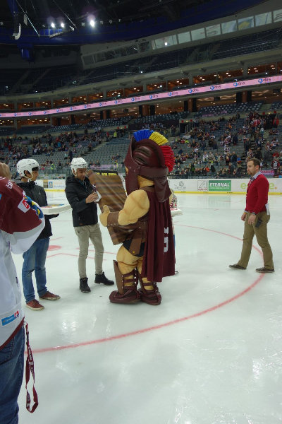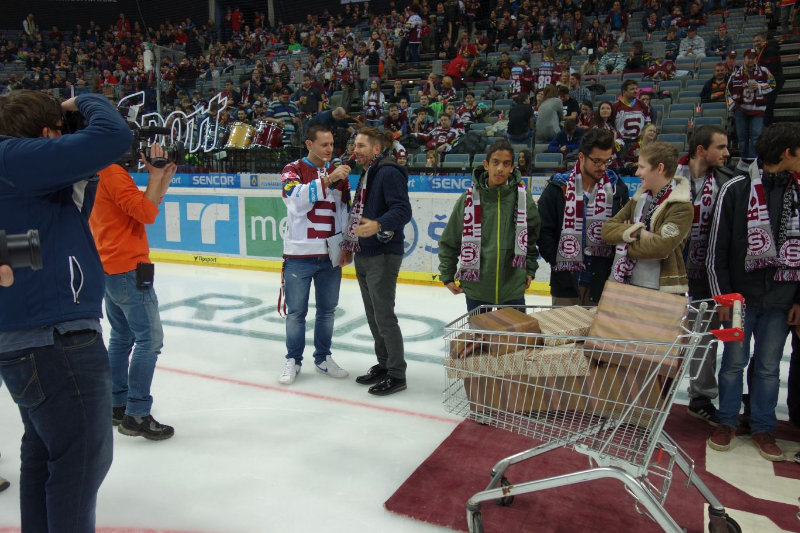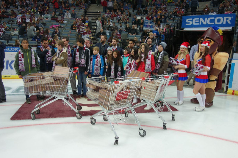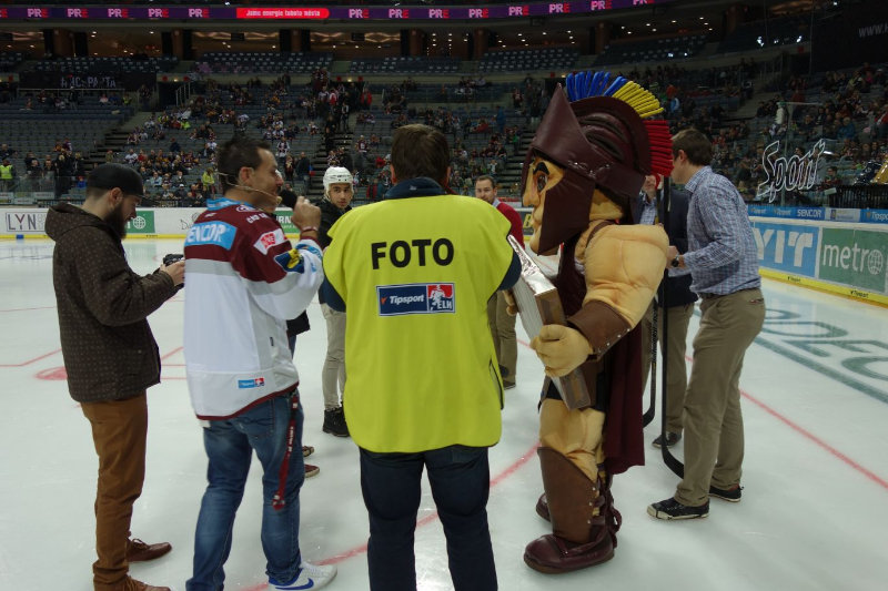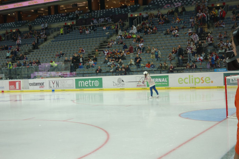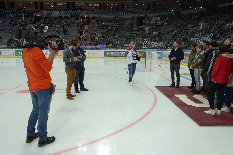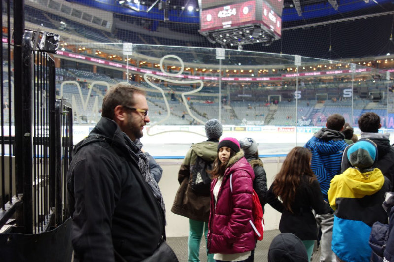 Následoval přesun do O2 Arény, prohlídka zázemí stadionu a šaten hráčů. O přestávkách si tři zástupci DD Litoměřice (Esmeralda), DD Krásní Lípa (Kevin) a DD Tisá (Martin) zasoutěžili na ledě ve střelbě hokejkou – pukem na cíl. Všichni zúčastnění byli oceněni dortem a výherce Kevin získal pro svůj domov stolní hokej!